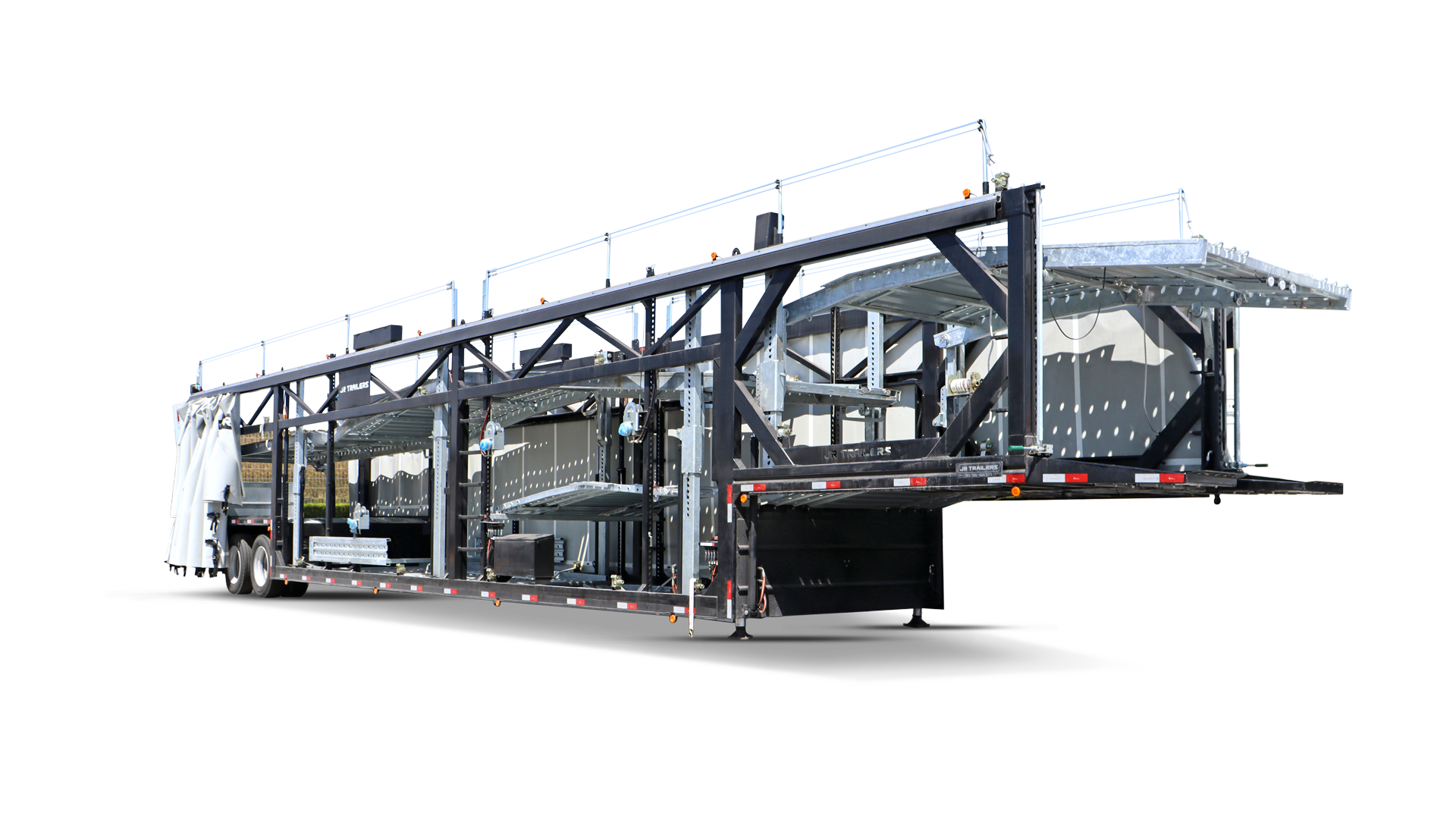 Este modelo destaca por su eficiencia tecnológica, integrando un accionamiento hidráulico mediante electrobomba Baucher Hydraulics de 2,600 psi y un sistema de frenado ABS de doble circuito. Además, cumple con los más altos estándares de seguridad y normativa vigente, ofreciendo una solución duradera y profesional para la logística de vehículos a gran escala.